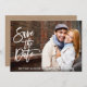 Script De Brosse Moderne Enregistrer La Date Fiançailles Carte photo - Script Blanc, Kraft Retour