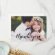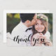Carte de remerciements photo moderne et fantaisiste avec calligraphie moderne blanche et whimsical avec motif géométrique triangles. Vous pouvez customiser la photo, les textes, et le motif arrière. Une version carte postale est également disponible.