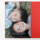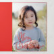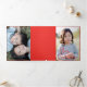 Ce magnifique design tri-plié est doté d'une photographie à fond et d'un script de calligraphie rouge audacieux "Joyeux Noël". L'accueil sur la couverture dit simplement "Joyeux Noël" et continue à l'intérieur. Lorsque vous ouvrez le premier panneau, vous voyez une seule photo verticale à fond plein avec votre texte de vacances principal. Lorsque vous ouvrez la carte, vous voyez une photo à gauche, une photo à droite, et au milieu, trois petites photos carrés chacune avec du texte personnalisé. Le dos de la carte est vide mais vous pouvez facilement ajouter une autre photo ou plus de texte. Ce design est un choix parfait pour un message chaleureux et sincère de joie de Noël. La mise en page multi-photo vous permet de télécharger un total de SEPT de vos photos de famille préférées en différentes tailles.