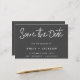 Budget Charcoal Grey (Grey) Moderne et Élégant minimaliste Main Lettré Script Enregistrer la date Carte postale Mariage. La carte d'invitation à la date inclut une typographie de script à la main moderne avec un design chic et simple auquel vous pouvez ajouter votre photo de fiançailles customisé à.