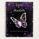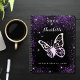 Arrière - plan noir, texte blanc. Décoré de faux parties scintillant violet, de mousseux et d'un grand papillon. Personnalisez et ajoutez une année, votre nom et un titre. Le nom est écrit avec un script de style moderne écrit à la main.