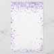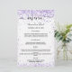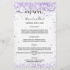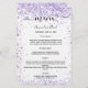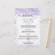 Un arrière - plan blanc. Décoré de parties scintillant en faux violet et lavande. Personnalisez et ajoutez vos noms et le menu du dîner mariage.