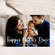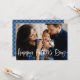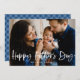 Carte de fête des pères moderne mignonne avec votre photo de famille préférée avec "Fête des pères heureuse" dans une superposition de script de brosse blanche et lettrée. Personnalisez l'avant de la carte de fête des pères en ajoutant un message d'accueil personnalisé et votre nom. La carte revient à un motif plaid bleu et blanc.