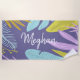 Arrière - plan de lavande avec feuillage tropical en bleu turquoise clair, jaune et rose avec monogramme de police élégante personnalisée
