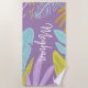 serviette de plage tropicaleététropicalfeuillejaunerosebrossescriptmonogrammeviolet