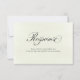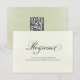 Carte de réponse de mariage à motif floral vert sauge élégant, avec calligraphie script romantique et code QR scannable pour des réponses en ligne faciles. Conçue avec des accents botaniques doux et une mise en page minimaliste épurée, cette carte est parfaite pour les mariages modernes, champêtres ou classiques. Un moyen beau et fonctionnel de simplifier les réponses des invités tout en gardant votre papeterie de mariage cohérente et élégante. Entièrement personnalisable avec vos détails de mariage et votre site web.