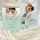 Un rapport qualité-prix BUDGET alternative sur une taille plus petite 4,5 x 5,6" semi-brillant poids 110lbs, qui est d'une épaisseur similaire à une carte postale (cependant ne convient pas à l'utilisation comme carte postale.) VEUILLEZ NOTER qu'il y a UN invitation par feuille. Budget 2 Photos Overlay Script QR Code Sage Green Mariage Ajouter votre code QR à votre site Web mariage au verso afin que vos invités puissent RSVP et voir tous les détails en ligne sans avoir besoin de pièces jointes séparées. Une typographie informelle pour l'en-tête principal le Mariage De compléter le reste du texte que vous pouvez facilement personnaliser. Remplacez les exemples de photos par vos propres favoris.