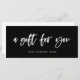 Ce certificat cadeau moderne pour petite entreprise présente une typographie décontractée blanche et tendance qui dit "un cadeau pour vous" sur un arrière - plan noir foncé.