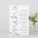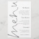 Taille 5.5" x 8.5" à un prix abordable, Ce design moderne a Menu dans élégant script gris défini en montant le côté gauche et le reste du texte est aligné à droite que vous pouvez facilement personnaliser ainsi que vos noms et date mariage au dos. Les couleurs texte et arrière - plan de chaque côté peuvent être changées à n'importe quel de votre choix via l'option customiser plus loin.