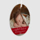 Élégant stylish Trendy Script My First Christmas Baby Photo Ornement rouge avec des flocons de neige retour