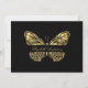 Un élégant arrière - plan noir décoré d'un faux papillon doré. Personnalisez et ajoutez votre nom sur le devant. Retour : Modèles pour Votre nom, titre, numéro de téléphone, adresse postale et de site Web, QR-code. Parfait pour les femmes entrepreneurs, consultants, propriétaires d'entreprises.