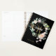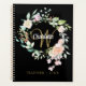 Joli planificateur monogramme 2023, avec un beau nom de script blanc avec une initiale en or complétant qui est encadrée par une délicate rose aquarelle fleurie sur un arrière - plan noir. Conçu par Thisisnotme©