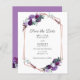 Enregistrez le cadre géométrique Date Purple Floral pour votre carte de budget de jour spécial faire-part. Cela fait partie de la collection de mariage violet et de douche nuptiale avec ce design si vous êtes un qui aime à assortir vos invitations, fournitures de fête et accessoires cadeaux. Pour une personnalisation plus avancée, cliquez sur le bouton "Personnaliser" ci-dessus. CONSEIL : éléments correspondants disponibles
