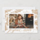 Cet élégant carte photo de vacances dispose d'une bordure dessinée à la main avec un feuillage d'hiver doré et d'un script fleuri qui affiche "Joyeux Noel" et qui accuse une seule photo personnalisable pour une sensation de vacances classique. Le dos ajoute un intérêt unique avec un motif de feuillage doré assorti.
