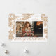 Cet élégant carte photo de vacances dispose d'une bordure dessinée à la main avec un feuillage d'hiver doré et d'un script fleuri qui affiche "Joyeux Noël", en ajoutant une seule photo personnalisable pour une sensation classique de vacances traditionnelles. Le dos ajoute un intérêt unique avec un motif de feuillage doré assorti.