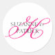 Stickers K Script Monogram (Dark Hot Pink / Black / White)...Ces stickers élégants, chic et modernes sont la façon parfaite de remercier vos amis et votre famille d'avoir assisté à votre mariage et de partager votre journée spéciale avec vous. Parfait pour remercier vos amis, votre famille et vos proches pour vos cadeaux de douche nuptiale, vos cadeaux de mariage, vos cadeaux de fête de bachelorette, ou simplement pour votre présence et votre soutien pendant votre journée spéciale. stickers idéal à utiliser sur vos faveurs de mariage ou sur les sacs / baggies pour votre bar à sucreries / buffet. Le design comprend un script monogramme initial de votre nouveau nom de famille ainsi que les noms de la mariée et du marié. Voir WindyCityStationery.com pour notre gamme complète d'autocollants "Script Monogram" dans une large gamme de couleurs. Nous avons toutes les lettres de l'alphabet disponibles !