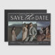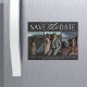 Un modèle moderne enregistre l'aimant de date conçu pour accueillir 3 photos verticales alignées côte à côte. "Enregistrer la date" apparaît en haut dans le bloc chic et les lettres de script, avec vos noms, la date du mariage et l'emplacement du mariage en dessous, ainsi que votre site Web mariage ou des détails supplémentaires.