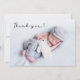 Simple moderne script manuscrit Photo Nouveau-né Carte de Merci bébé Faire-part de naissance. Dispose d'un beau texte "merci" dans un script de superposition photo de police de calligraphie. Message personnel préfabriqué à l'arrière en noir et blanc. Sexe neutre, idéal pour bébé fille ou bébé garçon. Facile à personnaliser avec votre photo bébé et les détails.