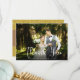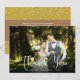 Une élégante carte de remerciements en écriture blanche avec votre photo de mariage préférée, votre nom et votre date spéciale. Au verso, votre message de remerciement personnalisé et des cœurs dorés en confettis. Conçue par Thisisnotme©