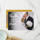 Un élégant carte de remerciements de script blanc avec votre photo mariage préférée, nom et date spéciale. L'inverse présente des confettis de coeurs d'or et vous pouvez personnaliser avec votre message de remerciement spécial. Une façon parfaite de dire merci ! Conçu par Thisisnotme©
