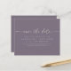 Budget minimaliste moderne de mariage de script Enregistrer la date dans foncé Dusty violet