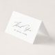 Un simple carte de remerciements mariage avec l'expression "merci" en caractères gris foncé, et vos noms et date mariage en caractères serif. La carte est vide à l'intérieur pour votre propre message manuscrit.