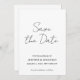Noir Et Blanc Moderne Minimaliste Élégant Script Calligraphie Simple Modèle Avec Votre Site Mariage QR Code Invitations & Papeterie & Annonces / Enregistrer les Dates / Imprimé Appartement Enregistrer La Carte Date.