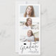 Script moderne noir Faire-part de graduation avec capuchon de graduation et 3 photos, simple et amusant. Personnalisez-le avec vos propres photos et informations sur les grandes fêtes.