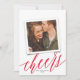 Ce carte photo moderne mais élégant de la nouvelle année présente un grand script "applaudissements" en rouge sur un arrière - plan blanc classique avec une seule photo de carré. Au-dessus de la photo est une fausse image photo cadre - le design réel n'est pas 3D. Sur le dos de la carte est la même couleur blanche. **TOUTES les couleurs sont personnalisables - couleur arrière - plan, couleur texte, même couleur script de calligraphie ! Cliquez simplement sur "customiser la conception plus loin" dans le menu déroulant.**