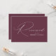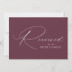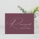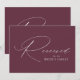 Panneau réservé moderne avec "Réservé" affiché dans un élégant script de calligraphie blanche avec un arrière - plan vin-violet ou couleur personnalisée. Personnalisez le script réservé avec votre texte personnalisé (actuellement affiché avec "Famille de la mariée"). La conception se répète à l'arrière du panneau. Utilisez le panneau mariage violet pour réserver des chaises ou des tables lors de votre cérémonie de mariage, réception, dîner de répétition ou d'autres événements spéciaux.