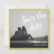 Script Moderne Enregistrer Le Carte photo Date. Ce design élégant et simple avec une bordure contrastée en jaune citron est le design parfait pour annoncer vos nouveautés à vos amis et votre famille. Nous avons ajouté un motif à pois au dos de la carte, mais n'hésitez pas à changer cela. Ajoutez votre photo préférée, vos noms, et votre date à la carte et vous êtes tous prêts.