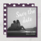 Script Moderne Enregistrer Le Carte photo Date. Ce design élégant et simple avec une bordure contrastée dans l'aubergine sombre est le design parfait pour annoncer vos nouveautés à vos amis et votre famille. Nous avons ajouté un motif à pois au dos de la carte, mais n'hésitez pas à changer cela. Ajoutez votre photo préférée, vos noms, et votre date à la carte et vous êtes tous prêts.