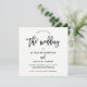 Cette faire-part de mariage moderne en noir et blanc présente une typographie de script branchée et une disposition simple et élégante.