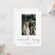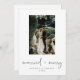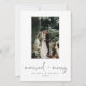 Un carte photo moderne à envoyer pour votre première saison de vacances en tant que carte de couple marié - il peut également servir de faire-part mariage. Ce design présente votre portrait mariage préféré et "marié et joyeux" en noir moderne écrit à la main police. Personnalisez davantage avec vos noms et votre date, et un message facultatif au verso.