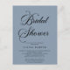 Invitation Minimale Moderne De La Douche Nuptiale Script. Montré en bleu poussiéreux, cependant, de nombreuses couleurs seront disponibles. Vous pouvez également modifier facilement la couleur arrière - plan dans l'outil de conception pour coordonner avec votre thème mariage.