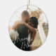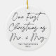 Célébrez votre première saison de vacances comme de jeunes mariés avec cet élégant ornement photo. L'avant présente votre photo préférée, tandis que l'arrière indique "Notre premier Noël en tant que Monsieur et Madame" dans un script moderne élégant. Un souvenir intemporel qui marque une belle étape et ajoute une touche personnelle à votre décor de vacances.
