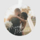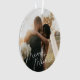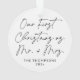 Célébrez votre première saison de vacances comme de jeunes mariés avec cet élégant ornement photo. L'avant présente votre photo préférée, tandis que l'arrière indique "Notre premier Noël en tant que Monsieur et Madame" dans un script moderne élégant. Un souvenir intemporel qui marque une belle étape et ajoute une touche personnelle à votre décor de vacances.
