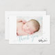 Style moderne moderne minimaliste bleu clair script garçon baby shower modèle de carte de remerciements personnalisé avec photo bébé nouveau-né et votre texte.