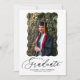 Célébrez votre jalon académique en style avec l'invitation Modern Script 2 Photos Graduation Party. Cette invitation chic allie une typographie de script élégante et fluide à une mise en page propre et contemporaine, avec deux espaces photo distincts pour présenter vos souvenirs préférés. Idéal pour les fêtes de fin d'études, il offre une touche personnalisée qui vous permet de mettre en valeur à la fois vos réalisations et votre voyage unique. Avec des options de texte personnalisables et une esthétique design moderne, cette invitation est parfaite pour donner le ton d'une célébration inoubliable.