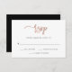 Cette carte RSVP de mariage en or rose, moderne, présente une typographie de script branchée et une disposition simple et élégante.