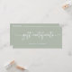 Ce certificat cadeau moderne, vert sage et blanc présente une élégante typographie manuscrite, Vous pouvez ajouter votre logo et un code QR à l'arrière pour un look simple, élégant et professionnel.