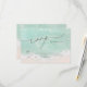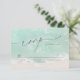 Beau turquoise abstraite aquarelle scintillante vague d'océan et les coeurs dans l'arrière - plan de plage de sable, surmonté d'un script élégant et d'élégante police serif, moderne et simple. Grandes cartes RSVP pour mariage nautique de plage, mariage de destination tropicale, mariage sur le thème de la mer côtière en été.