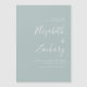Ce mariage moderne simple mais audacieux enregistrer la carte de date dispose de texte blanc dans la calligraphie stylisée écriture et sans serif police, aligné avec la marge droite sur un arrière - plan vert verre de mer.