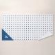 Chic ensemble de serviettes personnalisées dispose de pois bleus sur un arrière - plan blanc avec un monogramme de script blanc dans un triangle bleu dans le coin inférieur droit de chaque pièce. Customisez-le avec votre initiale dans la barre latérale. Achetez le set complet ou n'importe quel morceau. Pour voir le motif géométrique sur d'autres éléments, cliquez sur le lien "Rocklawn Arts". numériquement créé une image. Copyright ©Claire E. Skinner. Tous droits réservés.