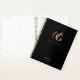 Script minimaliste en or monogrammé contre un arrière - plan noir. Customisez facilement le nom et le monogramme de choix à l'avant et à l'arrière.