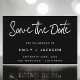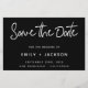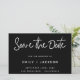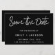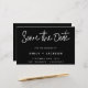 Budget Black Moderne et Élégant Mini Main Lettré Script Enregistrer la Carte Postale Mariage Date. La carte d'invitation à la date inclut une typographie de script à la main moderne avec un design chic et simple auquel vous pouvez ajouter votre photo de fiançailles customisé à.