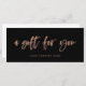 Ce certificat cadeau de petite entreprise moderne présente une typographie décontractée en or faux rose, qui dit "un cadeau pour vous", sur un arrière - plan noir foncé.