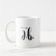 Une tasse ludique et moderne qui fait un cadeau mariage ou anniversaire parfait. Le design monochrome comporte l'expression "I'm the Mr" sur le côté droit dans un mélange de caractères sans serif et de caractères manuscrits en lettres de brosse, et sur le côté gauche, la version raccourcie du mot "estabilished" en caractères de script de brosse. personnalisez avec le nom de famille et l'année du mariage. Une tasse assortie est disponible avec l'expression "Je suis la Mme".