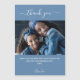 Une couleur arrière - plan bleue poussiéreuse. Écriture en lettres blanches, à grande main, avec swashes et texte : Merci. Personnalisez et ajoutez votre photo, merci note et nom.