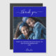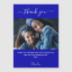 Couleur arrière - plan bleue royale. Écriture en lettres blanches, à grande main, avec swashes et texte : Merci. Personnalisez et ajoutez votre photo, merci note et nom.